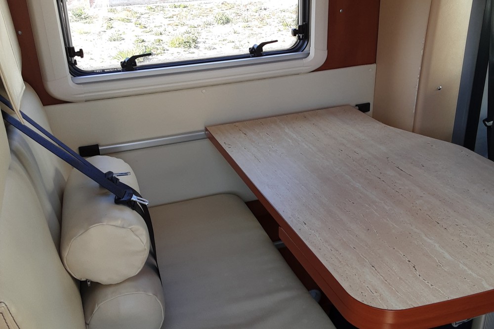 Een unieke camper van Italiaanse makelij met een warm interieur, grote garage met grote hangkast, super beveiligd met op alle deuren externe sloten van het merk Heosafe, op de cabine deuren binnen ook Heosafe sloten.nWilt u een unieke en niet een dertien uit een dozijn camper kom ons bezoeken want kijken is kopen.