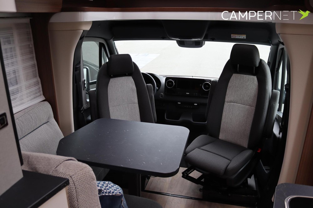 Panorama cabine met toptechnologieIn de cabine van de Hymer BMC-T 580 geniet je van een panoramisch uitzicht, zodat je niet alleen de omgeving optimaal kunt bewonderen, maar ook tijdens het rijden goed overzicht hebt op het verkeer. Het Mercedes-Benz MBUX multimedia systeem zorgt voor een soepele navigatie- en entertainmentervaring, terwijl de luxe pilotenstoelen, die verstelbaar en draaibaar zijn, het comfort verhogen.