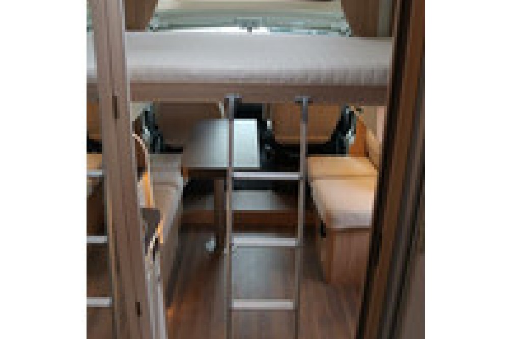 Deze ruime en comfortabele camper is voorzien van een face-to-face zitgroep, een queensbed achterin en een elektrisch hefbed voor extra slaapplaatsen.