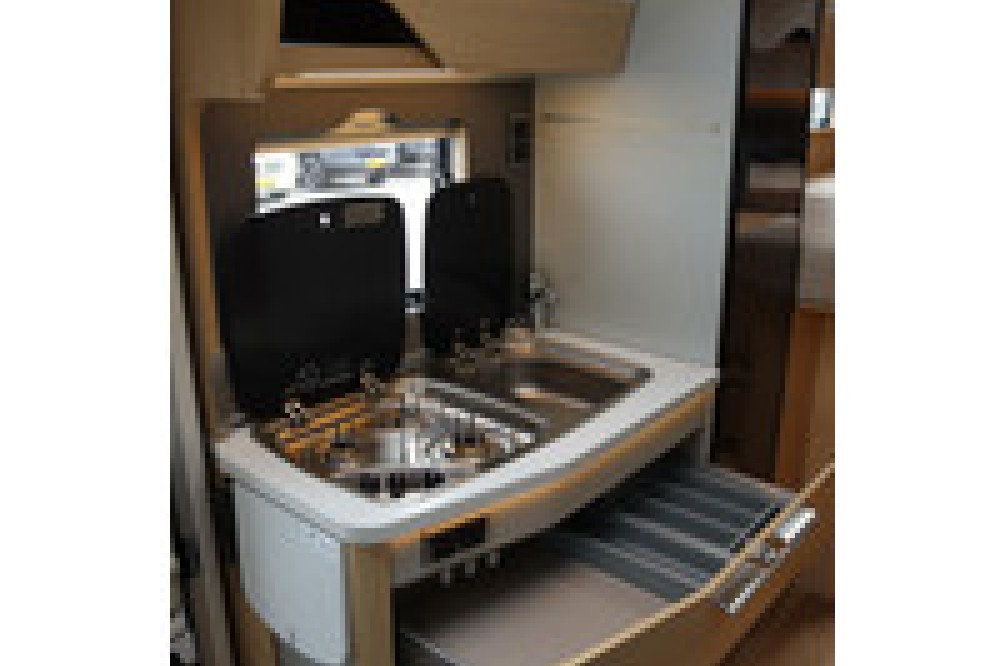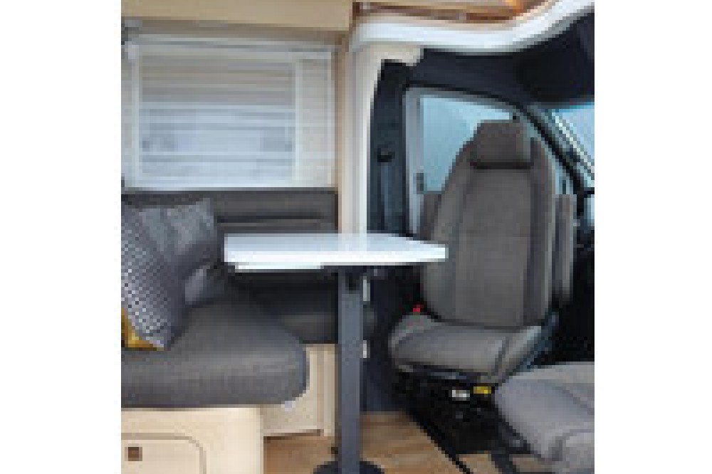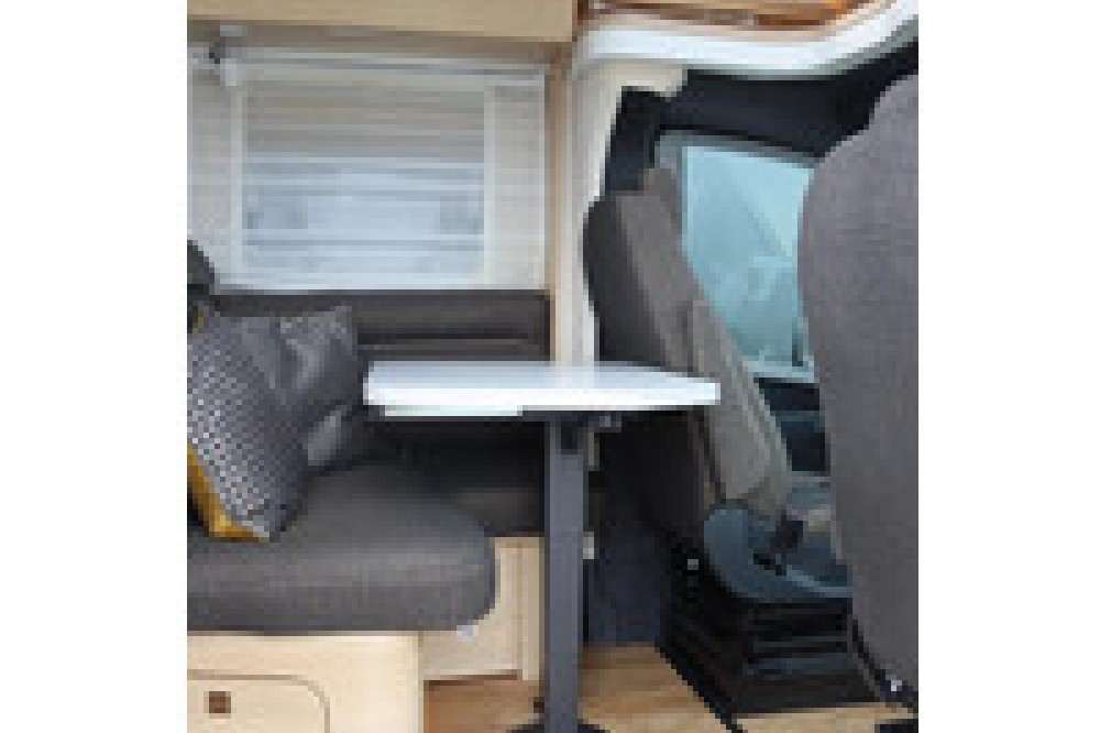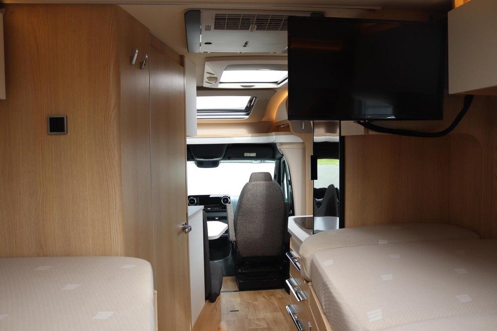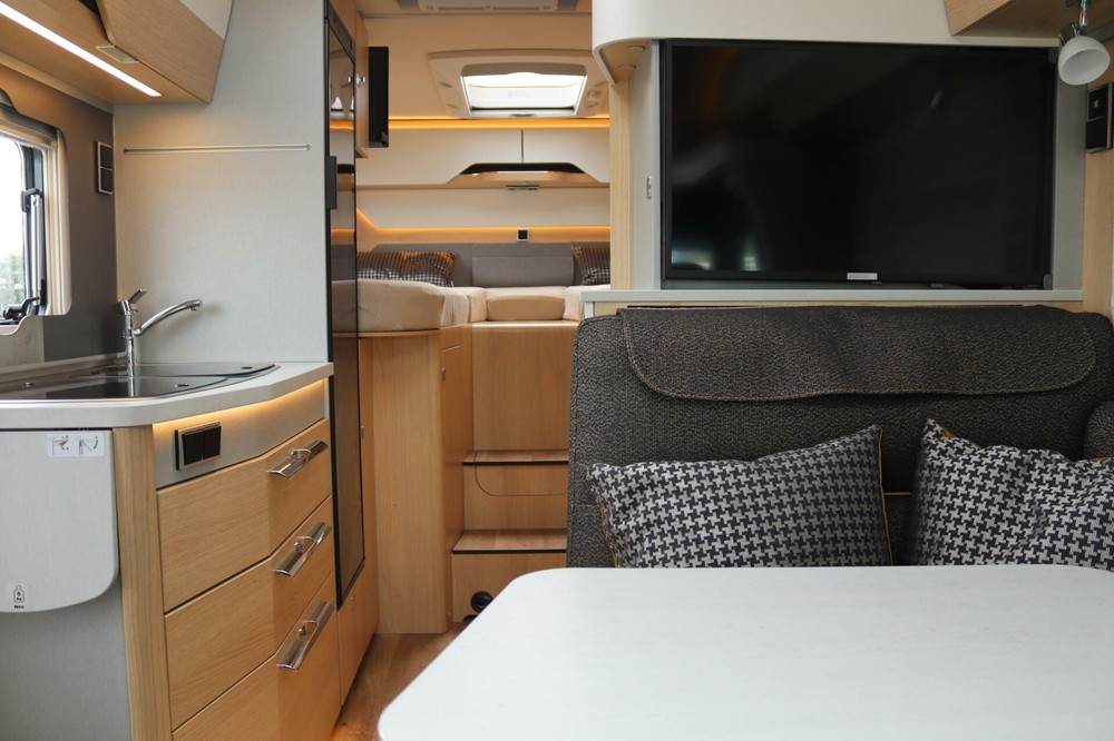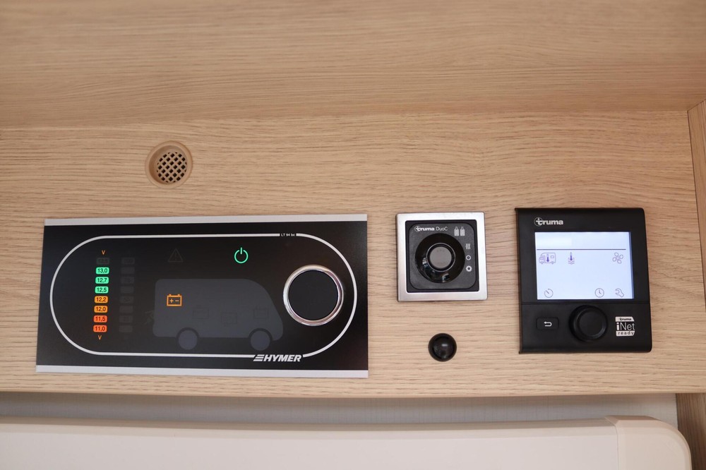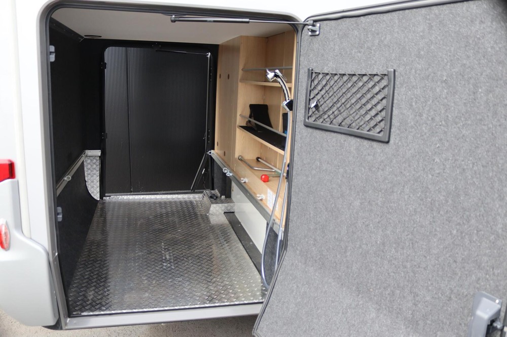 Luxe en praktische detailsDe Hymer BMC-T 580 biedt een ruime zithoek met een L-zit die ontstaat door de draaibare voorstoelen. Het elegante Grand Oak meubeldecor in combinatie met de luxe Milano bekleding zorgt voor een verfijnde uitstraling. Dankzij de dubbele bodem, die verwarmd is en extra opbergruimte biedt, kun je jouw spullen veilig en droog opbergen. De 180 liter schoonwatertank en de 150 liter vuilwatertank zijn weggewerkt in de dubbele bodem, terwijl je vanuit de buitenkant eenvoudig toegang hebt tot de opslagruimte. De ruime garage heeft een laadhoogte van 132 cm, is aan beide zijden toegankelijk en biedt voldoende ruimte voor uw fietsen, scooter en bagage.