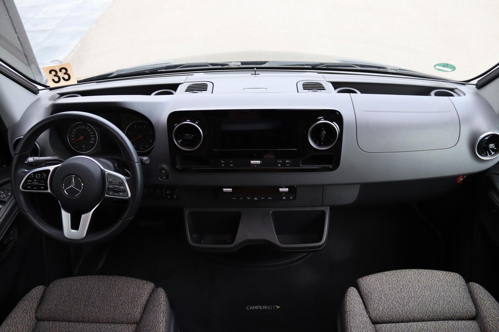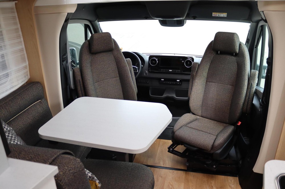 Panorama cabine met toptechnologieIn de cabine van de Hymer BMC-T 580 geniet je van een panoramisch uitzicht, zodat je niet alleen de omgeving optimaal kunt bewonderen, maar ook tijdens het rijden goed overzicht hebt op het verkeer. Het Mercedes-Benz MBUX multimedia systeem zorgt voor een soepele navigatie- en entertainmentervaring, terwijl de luxe pilotenstoelen, die volledig verstelbaar en draaibaar zijn, het comfort verhogen.