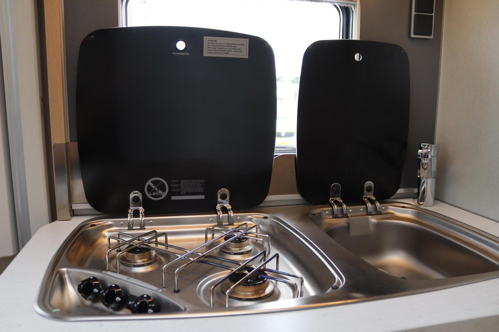 Interieur- 3-pits kookplaat met glasafdekking en RVS spoelbak
