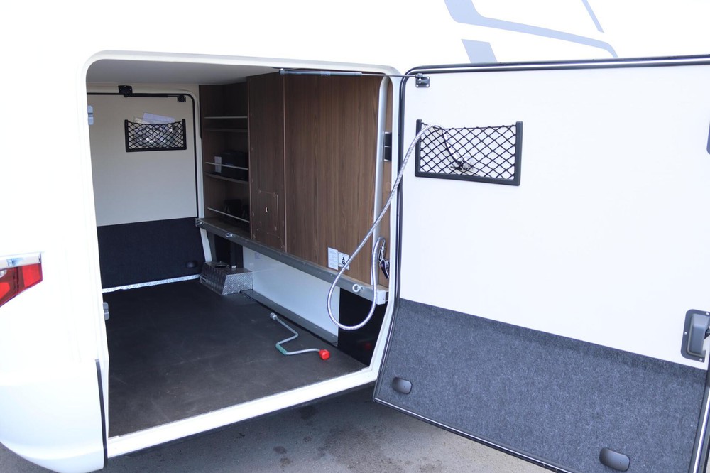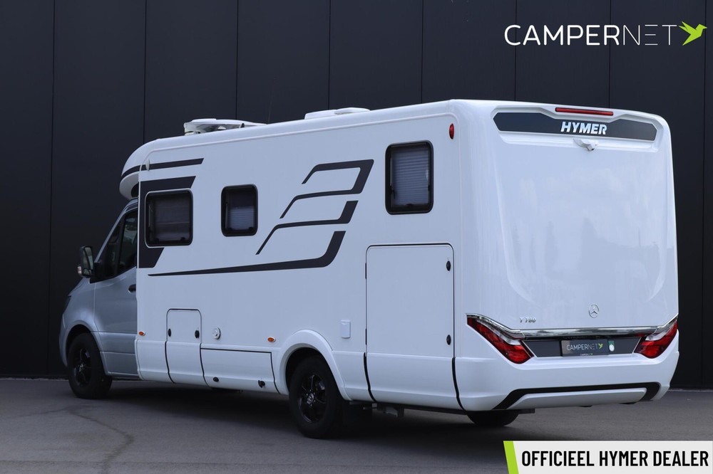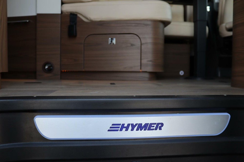 De camper wordt afgerond door de herwerkte strook met achterlichten en zelfdragende garagekast in een sportief diffusor-voorkomen. De multifunctionele achterlichten met hybride led-technologie en de drie kenmerkende balken van het HYMER-logo zijn heel goed herkenbaar.