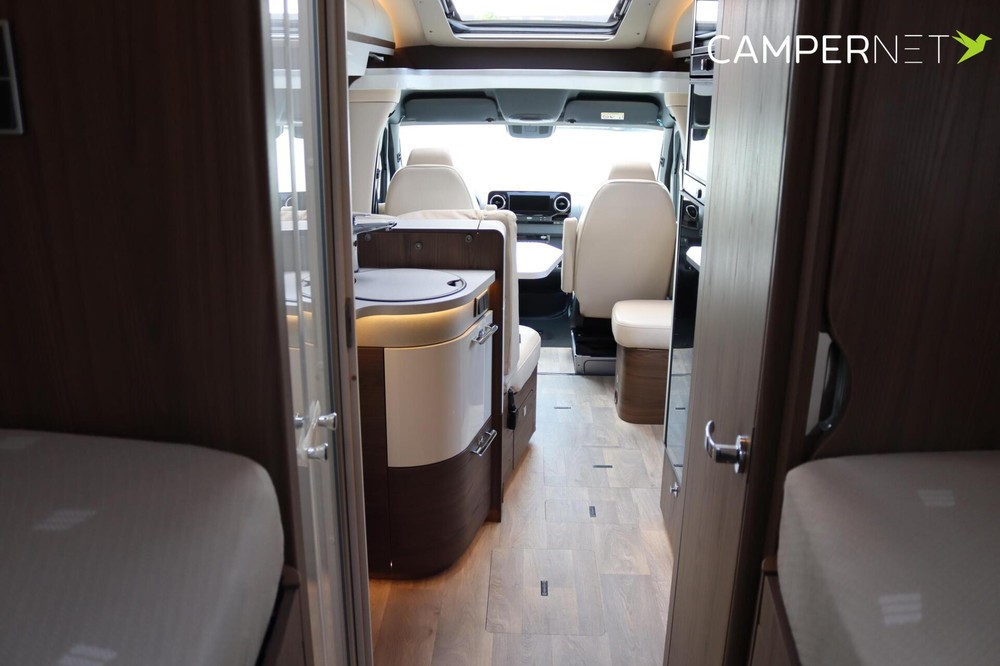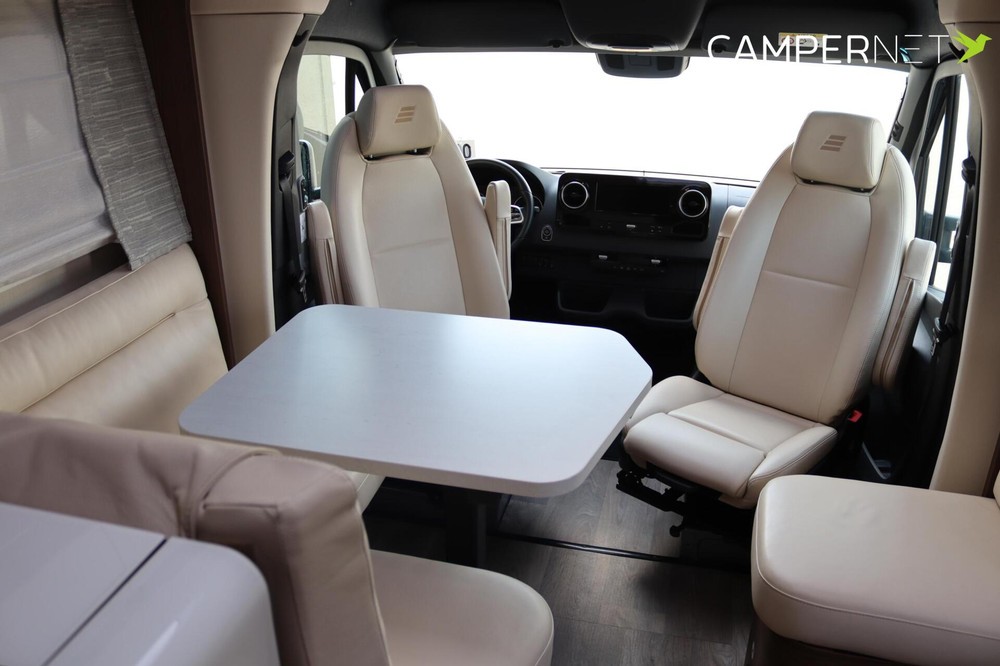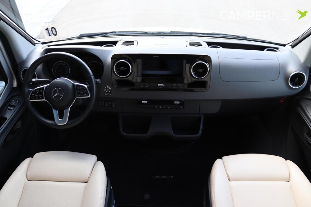 Panorama cabine met toptechnologieIn de cabine van de Hymer B-ML T 780 geniet je van een panoramisch uitzicht, zodat je niet alleen de omgeving optimaal kunt bewonderen, maar ook tijdens het rijden goed overzicht hebt op het verkeer. Het Mercedes-Benz MBUX multimedia systeem zorgt voor een soepele navigatie- en entertainmentervaring, terwijl de luxe pilotenstoelen, die volledig verstelbaar en draaibaar zijn, het comfort verhogen.
