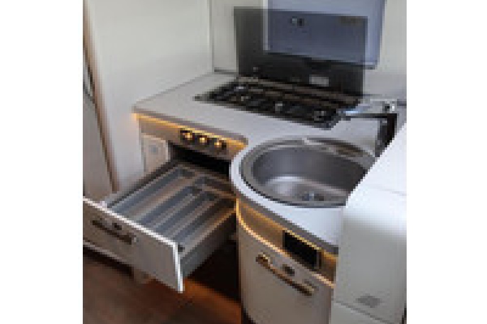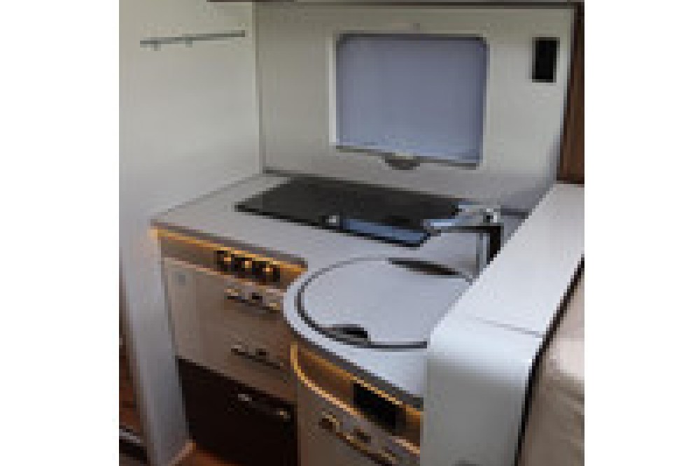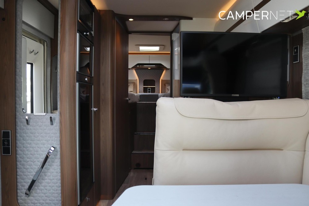 Luxe en praktische detailsDe Hymer Hymer B-ML T 780 biedt een ruime zithoek met een L-zit die ontstaat door de draaibare voorstoelen. Het elegante Velvet ash meubeldecor in combinatie met de luxe lederen Napoli bekleding zorgt voor een verfijnde uitstraling. Dankzij de dubbele bodem, die verwarmd is en extra opbergruimte biedt, kun je jouw spullen veilig en droog opbergen. De 180 liter schoonwatertank en de 150 liter vuilwatertank zijn weggewerkt in de dubbele bodem, terwijl je vanuit de buitenkant eenvoudig toegang hebt tot de opslagruimte. De ruime garage heeft een laadhoogte van 132 cm, is aan beide zijden toegankelijk en biedt voldoende ruimte voor uw fietsen, scooter en bagage.