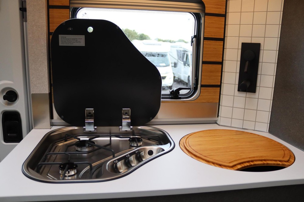Interieur- 3-pits kookplaat met glasafdekking en RVS spoelbak