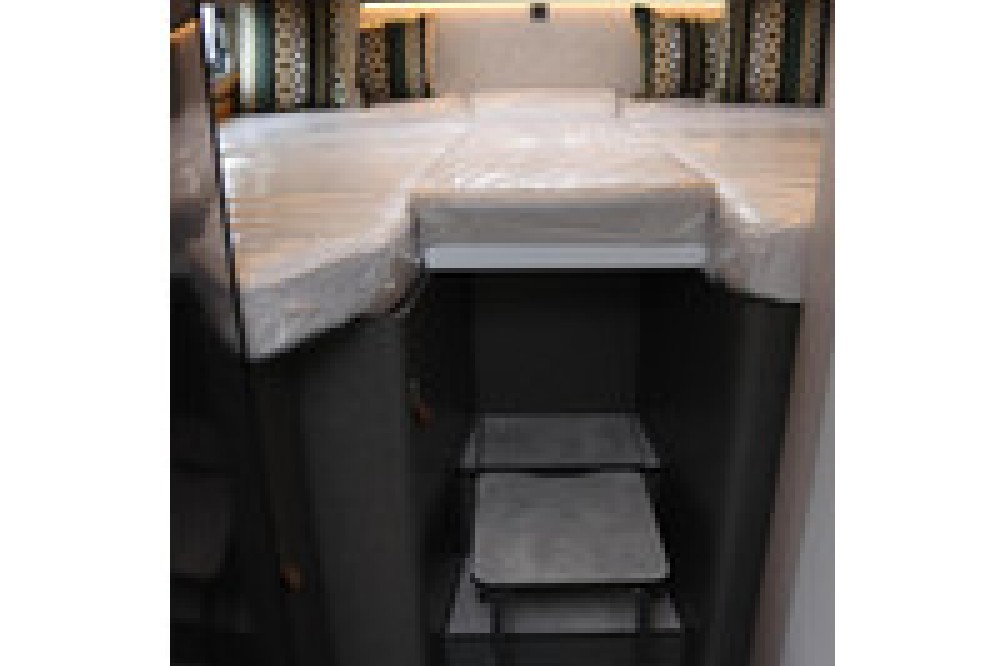 Bedverlenging passagierszijde (+22cm) en halfhoge kledingkast (in plaats van kast van vloer tot plafond)