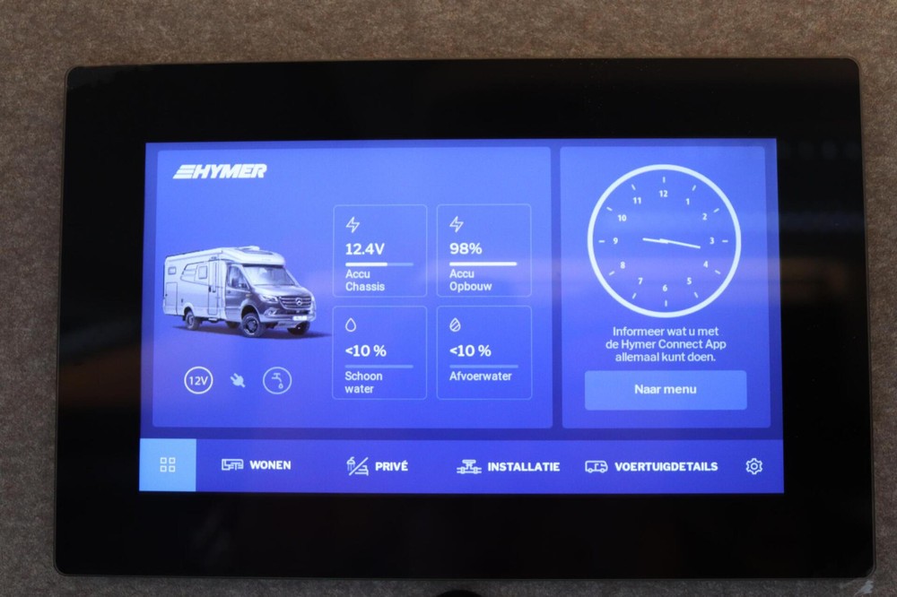 Volledige controle door een klik met uw vinger.Dankzij het standaard HYMER Connect System heeft u alle regelbare functies van het woongedeelte altijd in de hand.