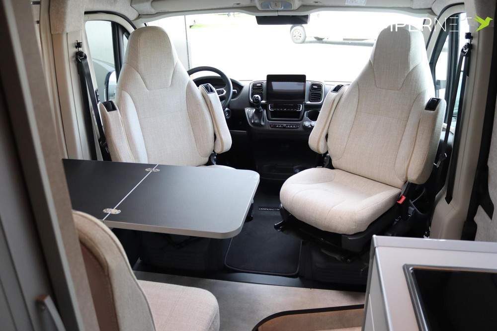 Geniet op elk moment van vakantiestemming – ook later op de avond – dankzij het eerste omvangrijke lichtconcept met vier niveaus in een buscamper. Door de keuze uit lichtscenario’s, die u via uw Connect-app kunt regelen en programmeren, creëert u in het woongedeelte en de keuken de gewenste sfeer. Warm of koud wit, met een dimfunctie voor alle lichten. Leeslampjes met aanraakbediening boven de cabinestoelen en een optioneel lichtpakket met innovatieve hanglamp en modulaire lampen voor de functionele rail maken dit lichtconcept op alle vlakken uniek.