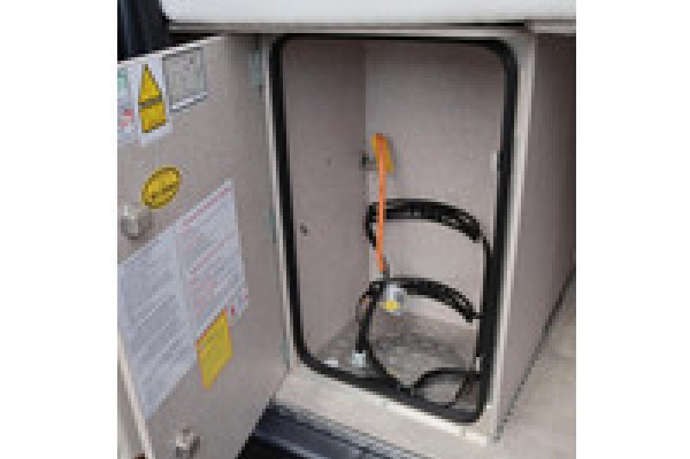 - Accubak onder de vloer gemonteerd met handige serviceopening in het voertuig