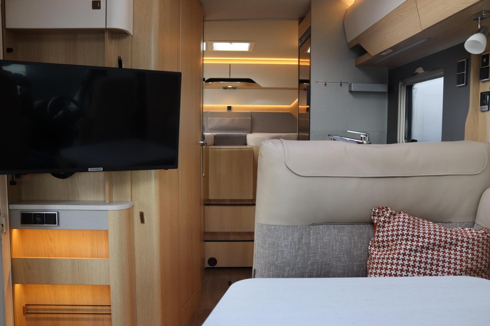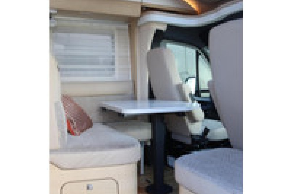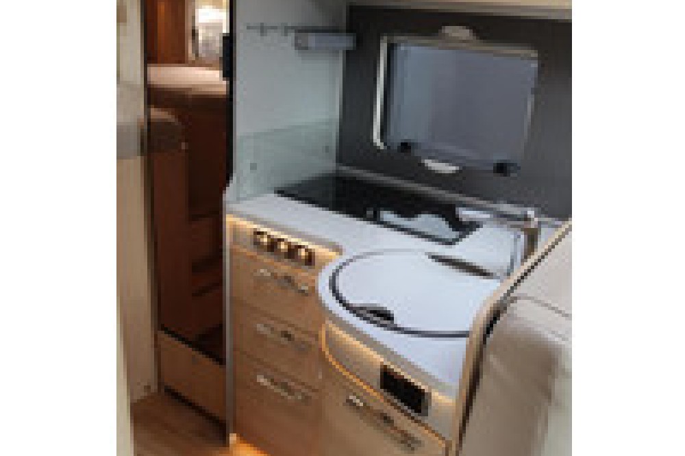 Luxe en praktische detailsDe Hymer BMC-T 600 biedt een ruime zithoek met een L-zit die ontstaat door de draaibare voorstoelen. Het elegante Grand Oak meubeldecor in combinatie met de luxe Creola bekleding zorgt voor een verfijnde uitstraling. Dankzij de dubbele bodem, die verwarmd is en extra opbergruimte biedt, kun je jouw spullen veilig en droog opbergen. De 180 liter schoonwatertank en de 150 liter vuilwatertank zijn weggewerkt in de dubbele bodem, terwijl je vanuit de buitenkant eenvoudig toegang hebt tot de opslagruimte. De ruime garage heeft een laadhoogte van 132 cm, is aan beide zijden toegankelijk en biedt voldoende ruimte voor uw fietsen, scooter en bagage.