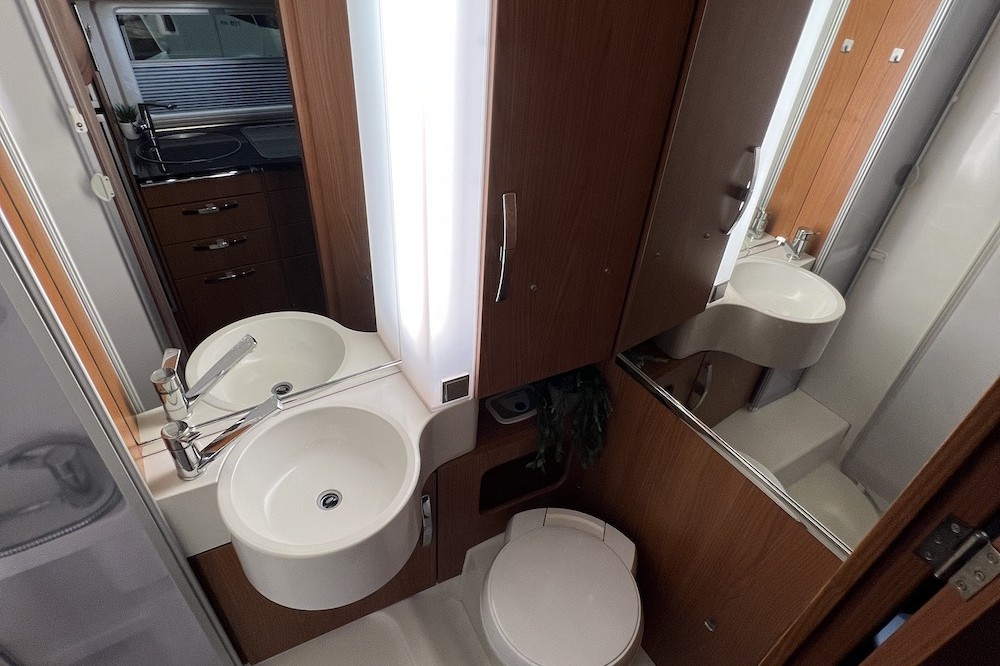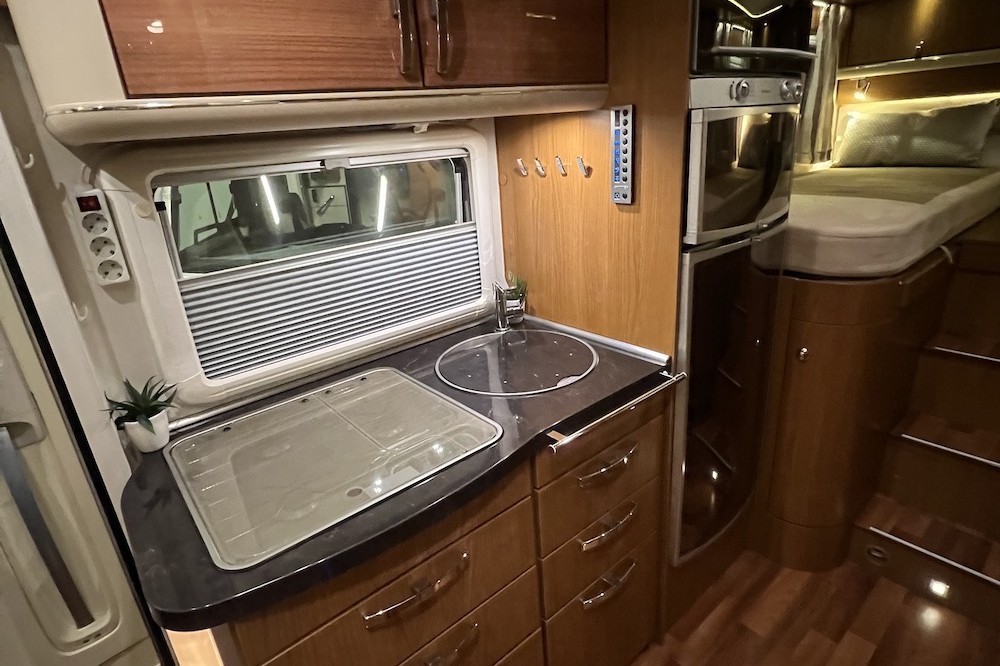 - Oven op gas en koelkast met automatische bronselectie (12V / 220V / gas)