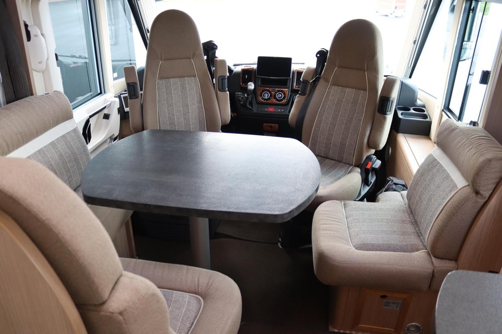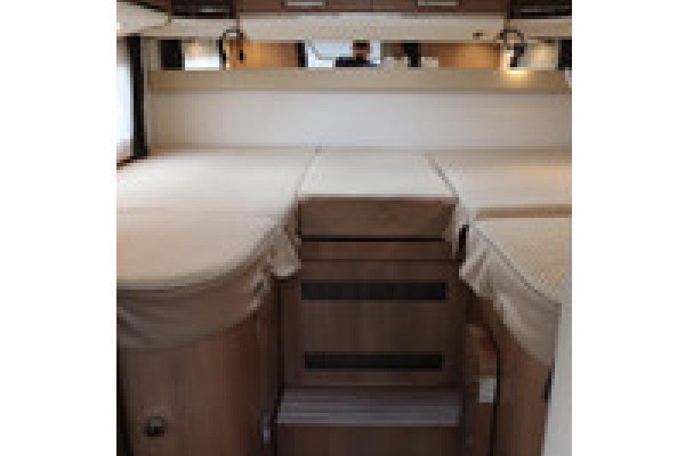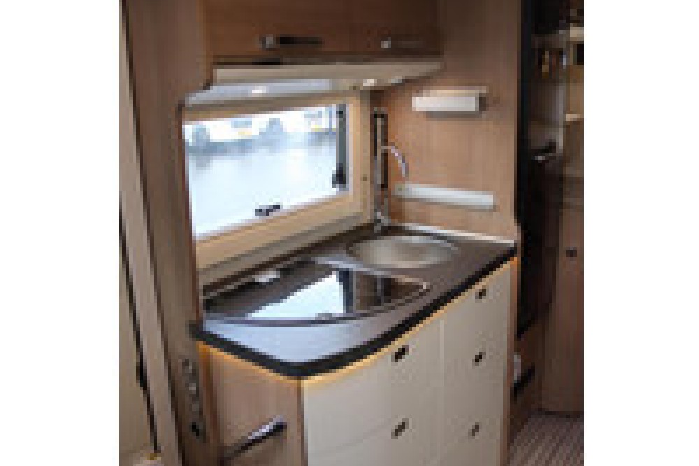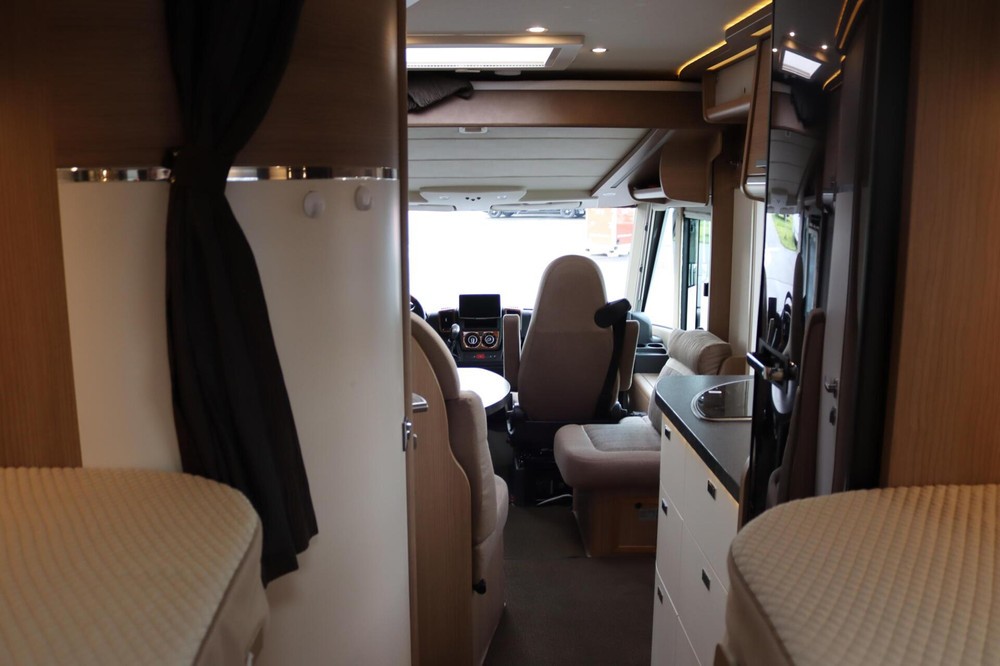 Deze luxe integraalcamper heeft de kwaliteit die u gewend bent van Carthago. De strakke langskeuken is voorzien van grote lades, drie gaspitten en slimme afzetmogelijkheden. De koelkast van 133 liter staat ernaast. In de L-vormige zithoek kunnen vier mensen relaxen. Boven de cabine hangt een tweepersoonshefbed. De dubbele bodem biedt opvallend veel opbergruimte. De I 430 staat op het Fiat Ducato Light-chassis met een motor van 150 pk. In de garage van 1,20 meter hoog past een scooter.