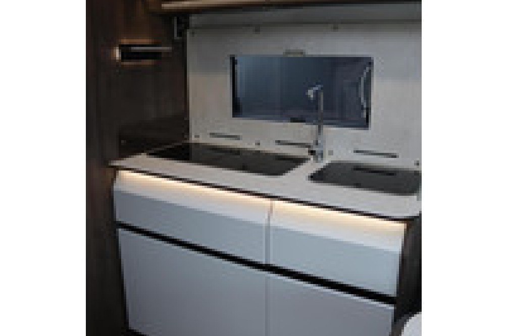 - Verzonken spoelbak en 3-pits RVS gasstel met elektrische ontsteking