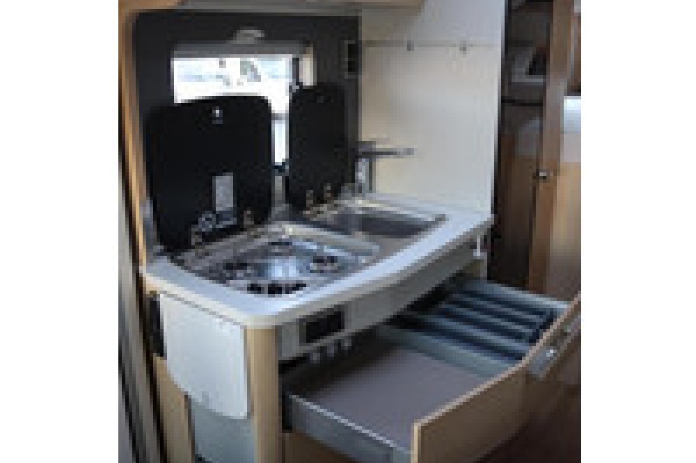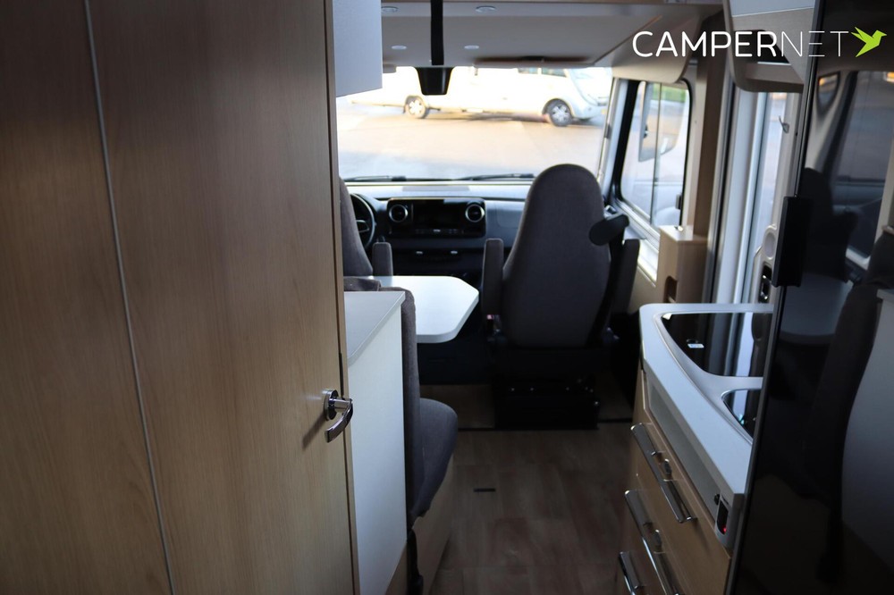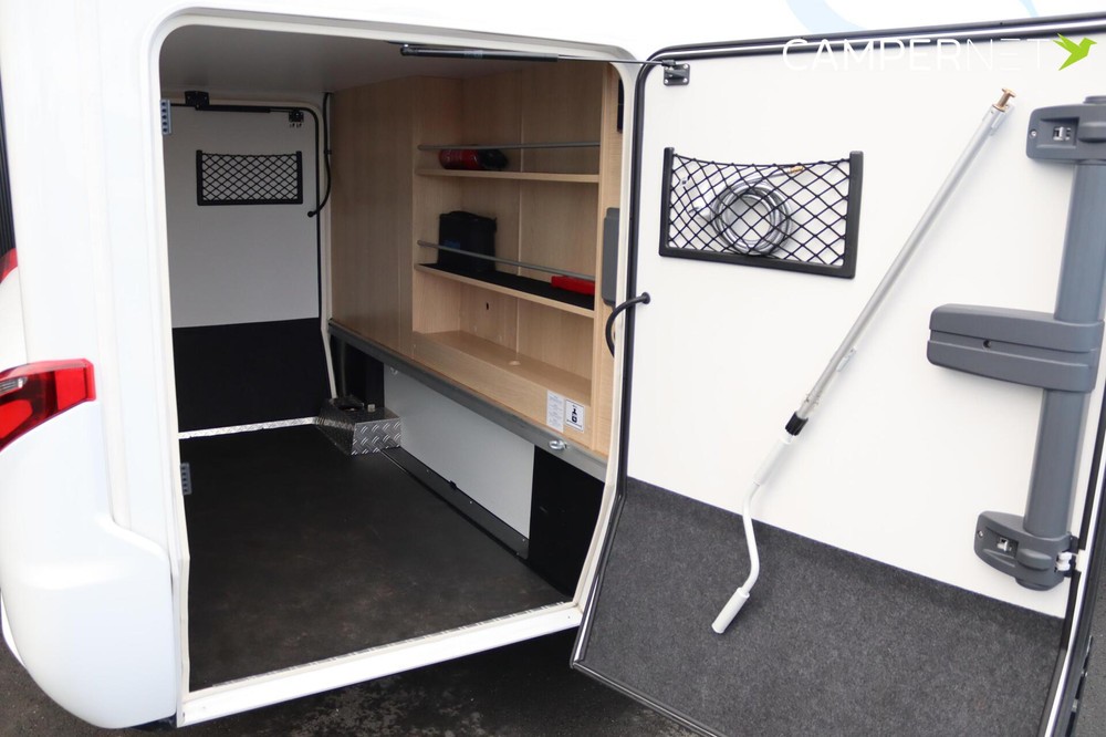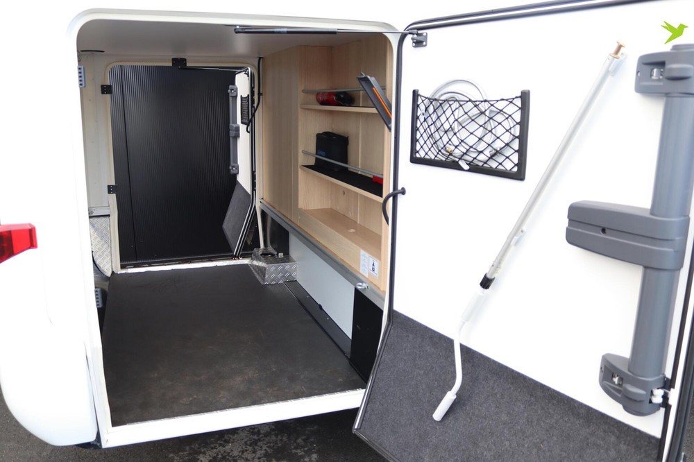 Luxe en praktische detailsDe Hymer BMC-I 580 biedt een ruime zithoek met een L-zit die ontstaat door de draaibare voorstoelen. Het elegante Grand Oak meubeldecor in combinatie met de luxe Janeiro bekleding zorgt voor een verfijnde uitstraling. Dankzij de dubbele bodem, die verwarmd is en extra opbergruimte biedt, kun je jouw spullen veilig en droog opbergen. De 180 liter schoonwatertank en de 150 liter vuilwatertank zijn weggewerkt in de dubbele bodem, terwijl je vanuit de buitenkant eenvoudig toegang hebt tot de opslagruimte. De ruime garage heeft een laadhoogte van 132 cm, is aan beide zijden toegankelijk en biedt voldoende ruimte voor uw fietsen, scooter en bagage.