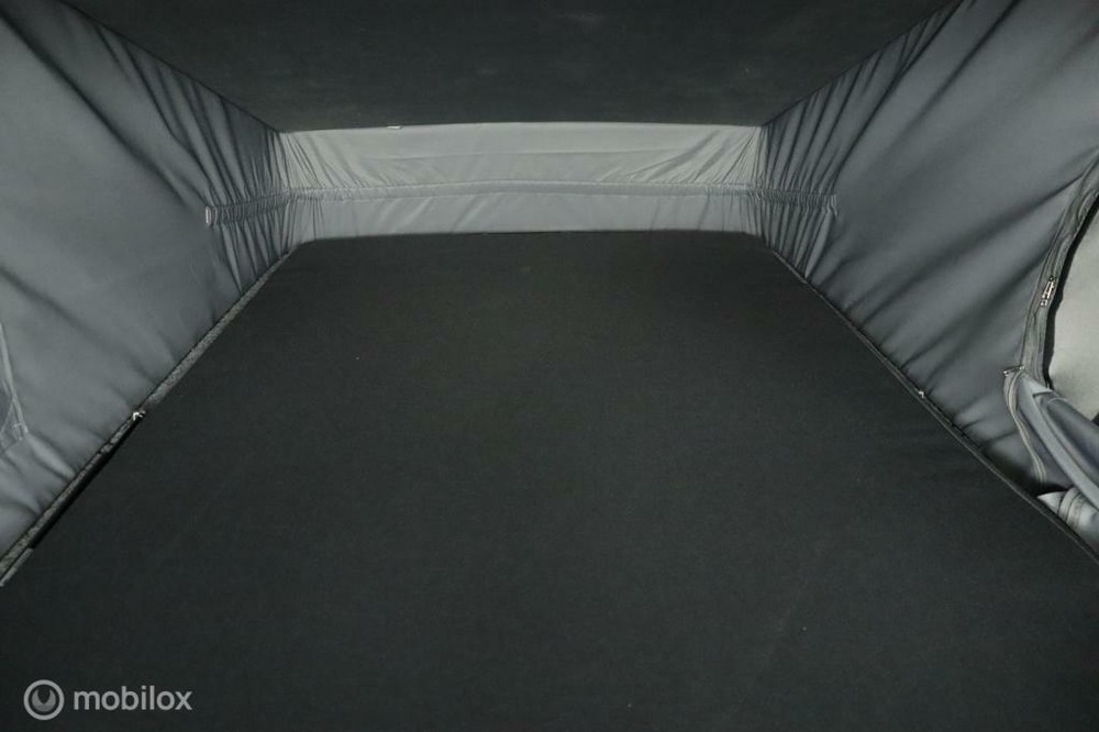 De buscamper is voorzien van een slaap-hefdak met een bedmaat van 120 x 200 cm en heeft rondom glastinting.