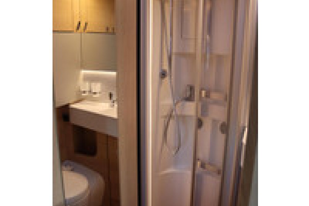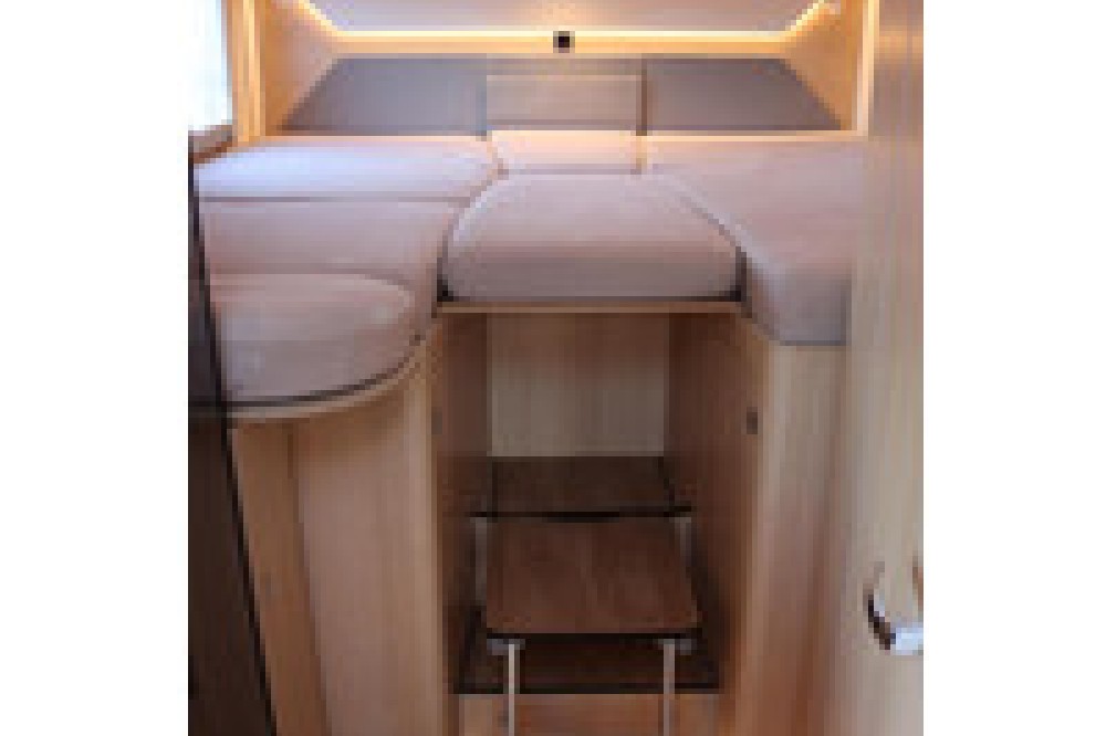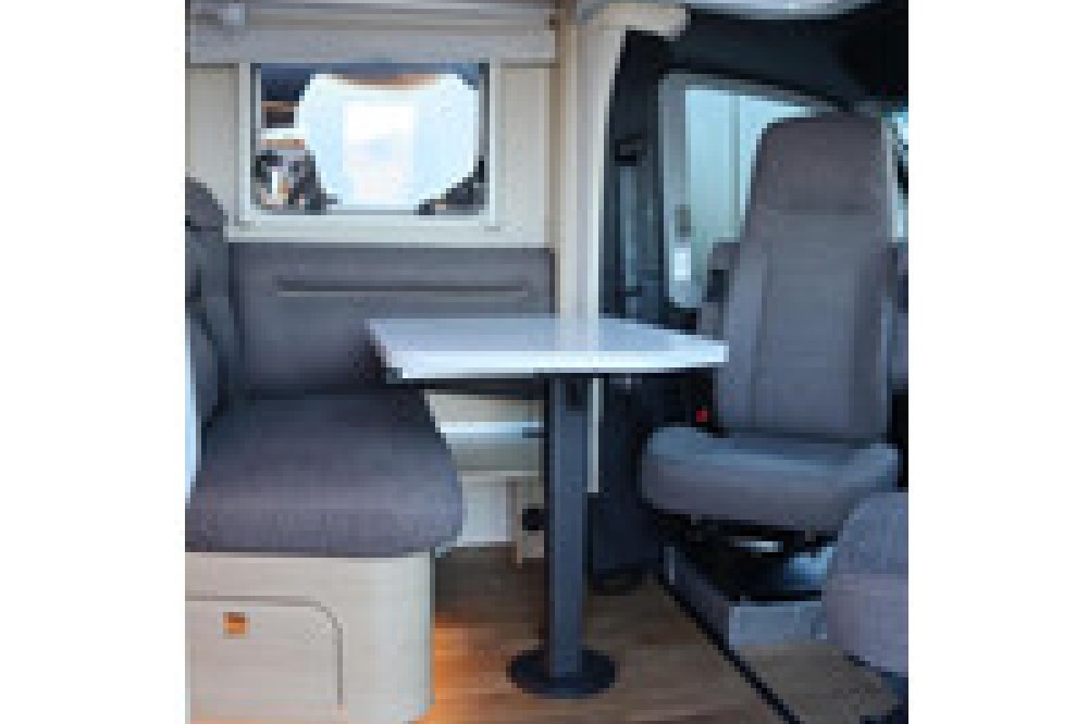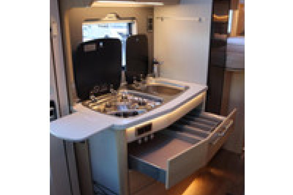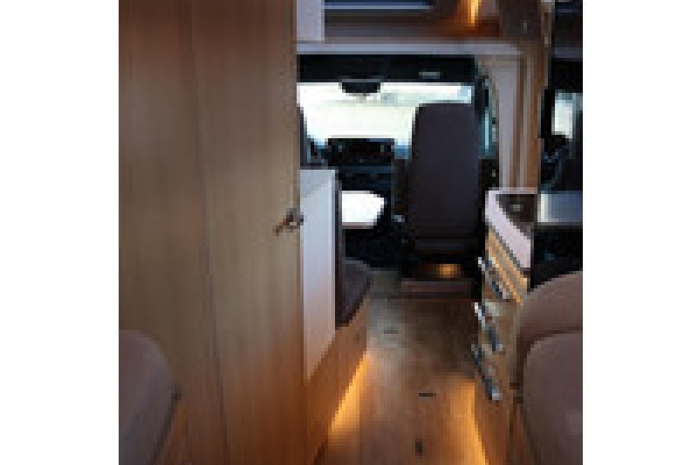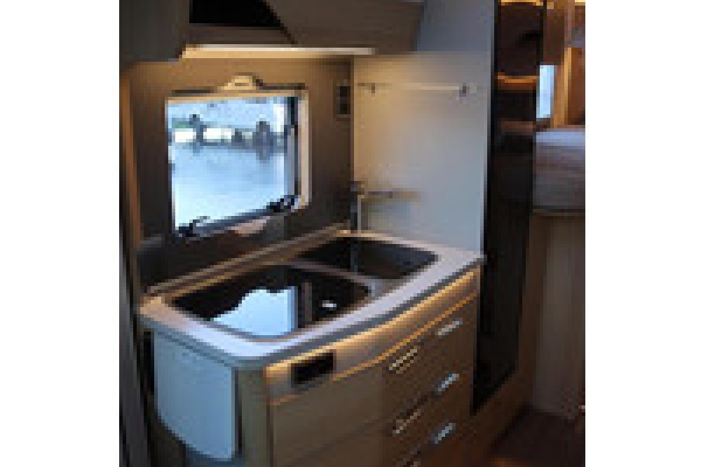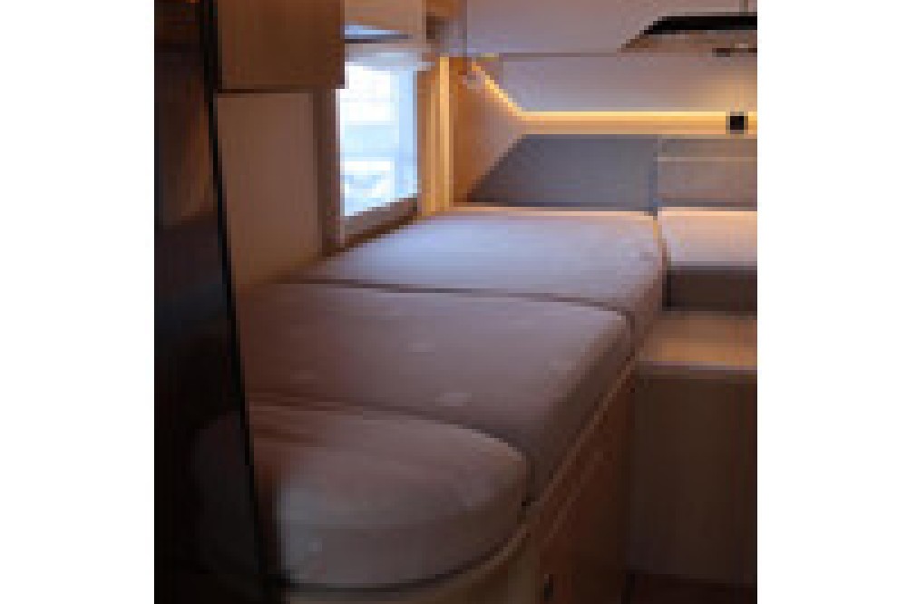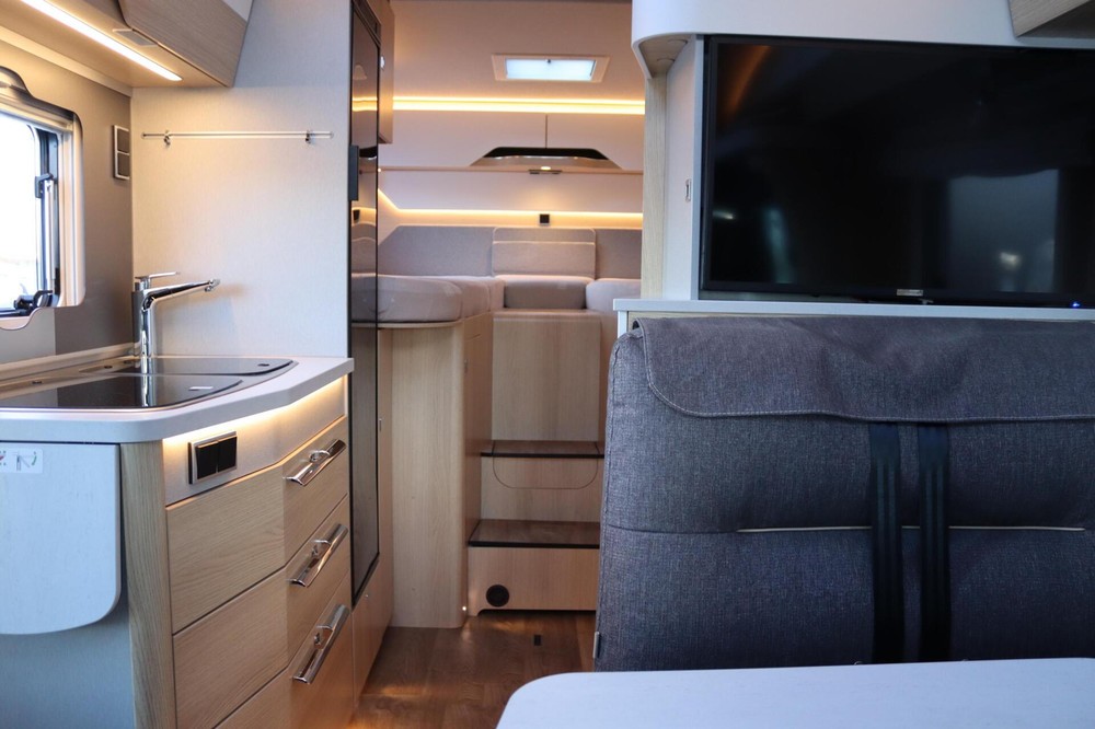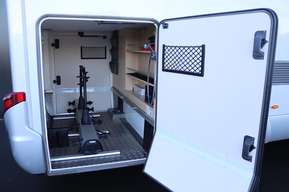 Luxe en praktische detailsDe Hymer BMC-T 580 biedt een ruime zithoek met een L-zit die ontstaat door de Agouti draaibare voorstoelen. Het elegante Grand Oak meubeldecor in combinatie met de luxe Janeiro bekleding zorgt voor een verfijnde uitstraling. Dankzij de dubbele bodem, die verwarmd is en extra opbergruimte biedt, kun je jouw spullen veilig en droog opbergen. De 180 liter schoonwatertank en de 150 liter vuilwatertank zijn weggewerkt in de dubbele bodem, terwijl je vanuit de buitenkant eenvoudig toegang hebt tot de opslagruimte. De ruime garage heeft een laadhoogte van 132 cm, is aan beide zijden toegankelijk en biedt voldoende ruimte voor uw fietsen, scooter en bagage.
