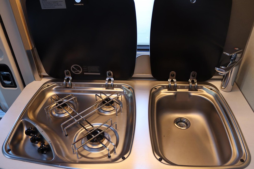 Interieur- 3-pits kookplaat met glasafdekking en RVS spoelbak