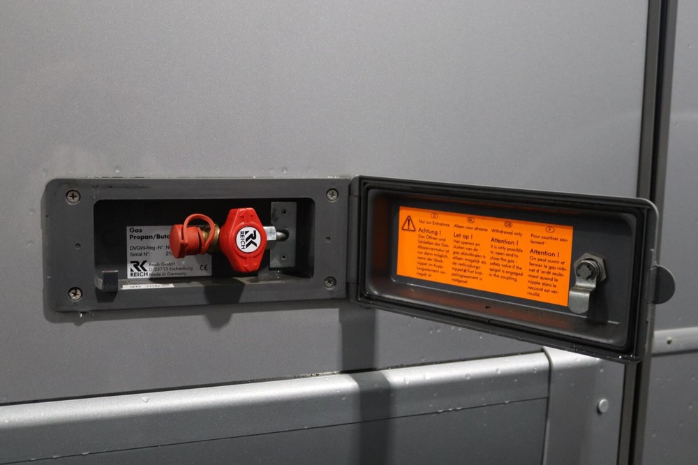 - Ruimte voor gasflessen met deur en uittrekbare slede