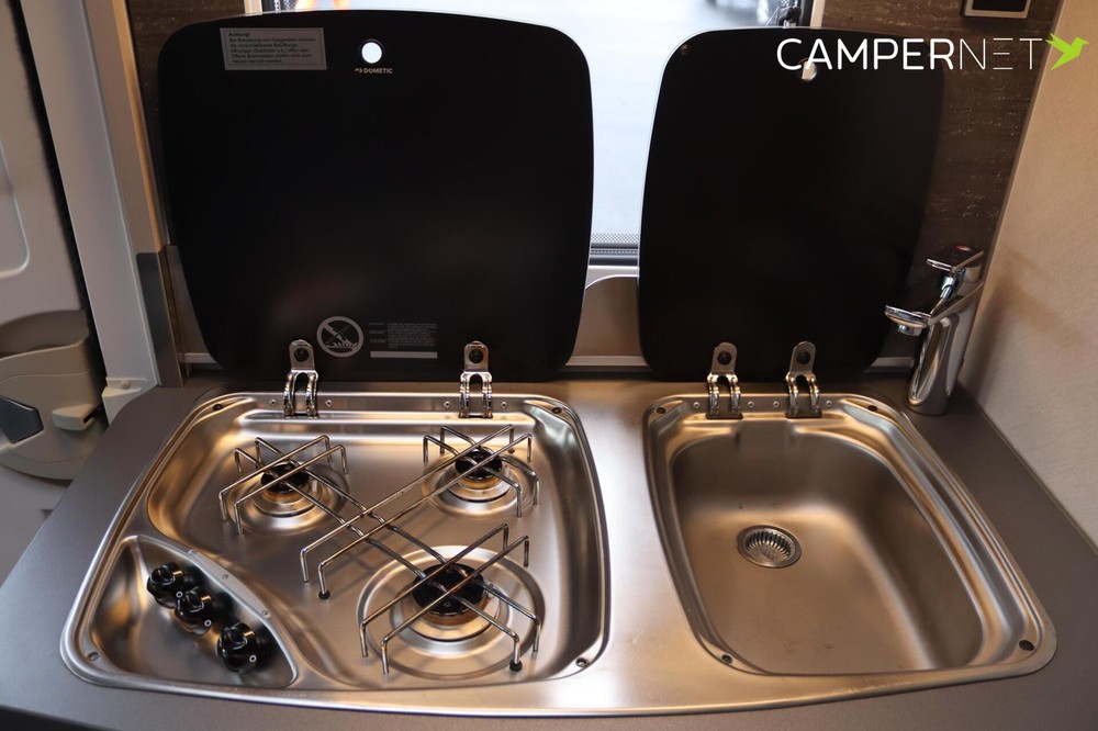 Interieur- 3-pits kookplaat met glasafdekking en RVS spoelbak