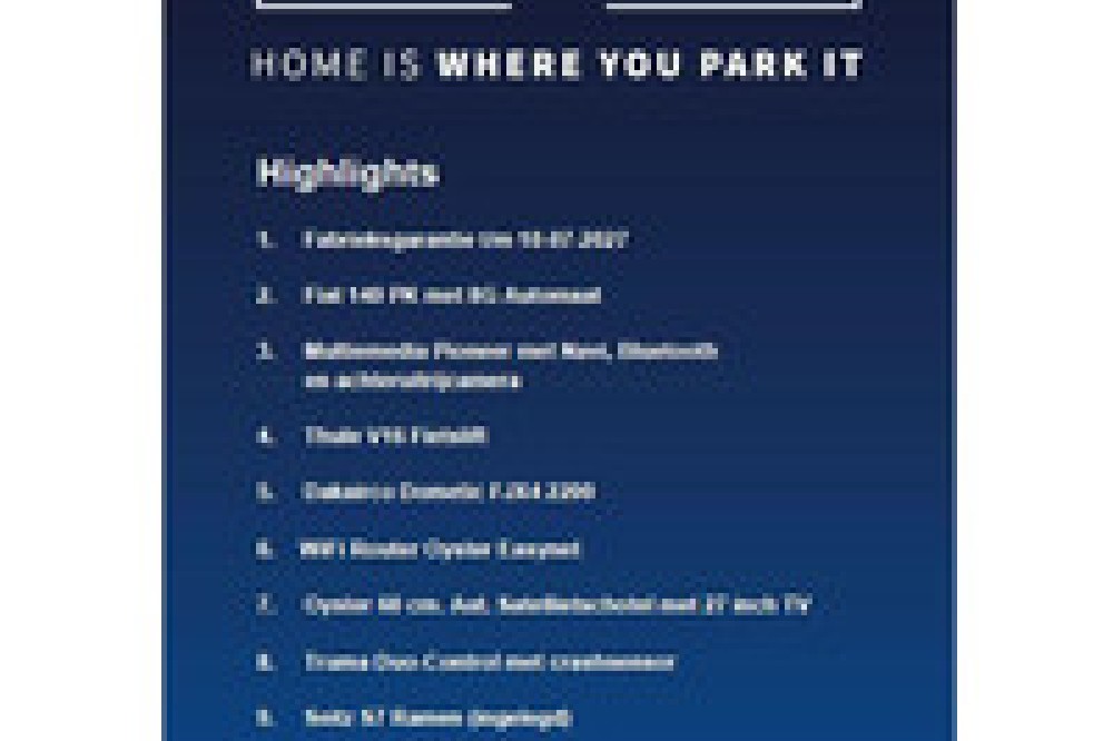 AfleverpakkettenRijklaarpakket met fabrieksgarantieDeze camper zal worden geleverd met fabrieksgarantie, benodigde servicebeurt, volledige uitleg en tenaamstelling. Uiteraard zorgen wij dat uw nieuwe camper er spik en span voor staat!