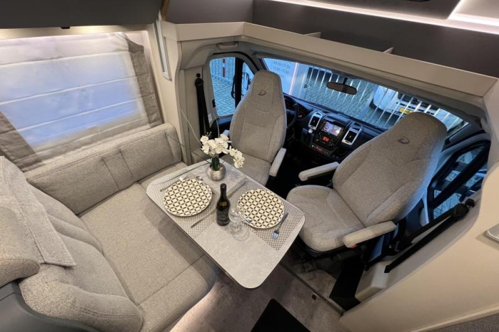De bekleding van de cabinestoelen is gelijk aan de bekleding van de dinette
