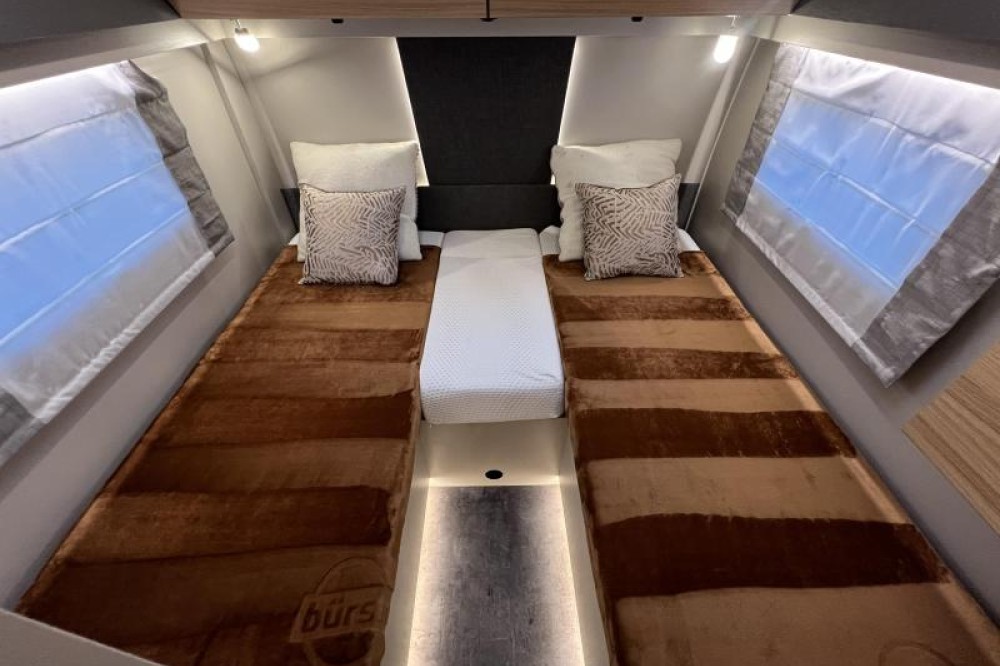De Dinette is eenvoudig dmv een kleine aanpassing te transformeren in een extra bed (origineel af fabriek tafel met een inklapbare poot waardoor u deze eenvoudig kunt laten zakken)