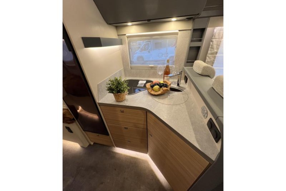 Deze unieke camper is gebouwd op de vernieuwde Fiat Ducato en is voorzien van de nog krachtigere en zuinigere Multi-Jet II Diesel Euro 6 motor met 130 pk. De vernieuwde Ducato is te herkennen aan de rode cijfers op de cabine.