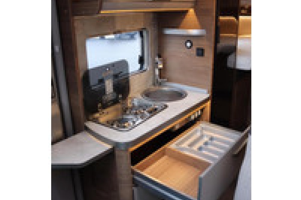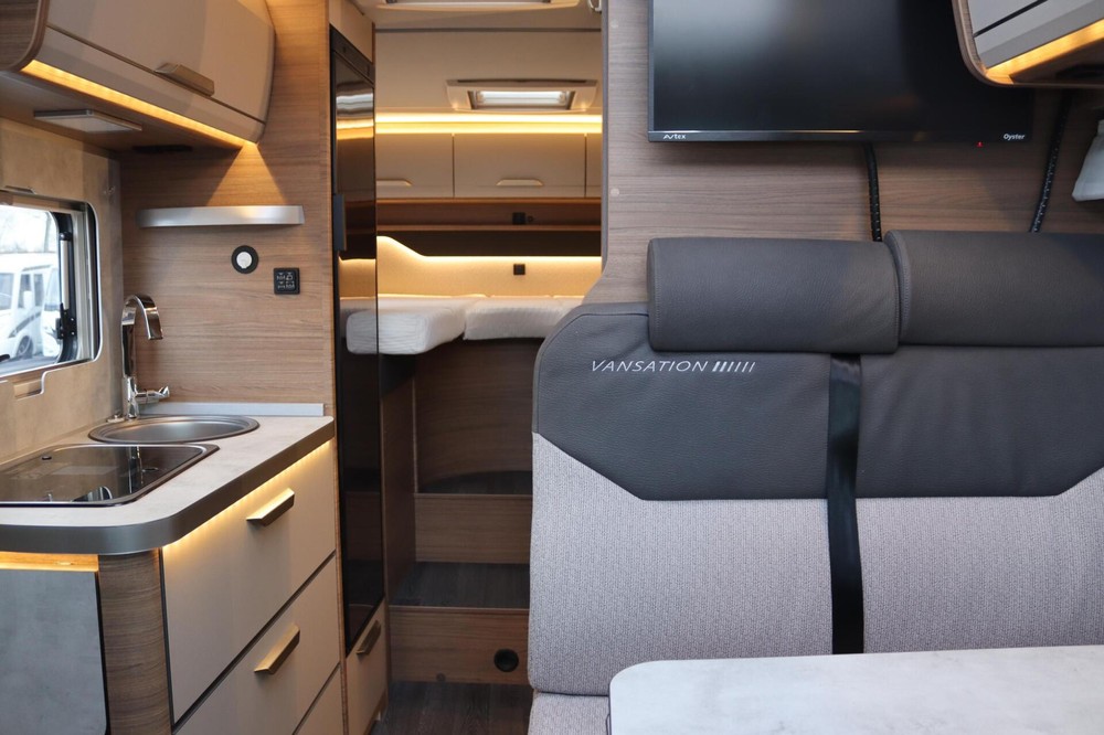 KNAUS VAN Ti 650 MEG Vansation is groot genoeg gemaakt voor een echt campergevoel, maar compact genoeg voor bochtige wegen aan de kust. De smalle, volledig uitgeruste camper is slechts 2,20 meter breed en inspireert als lichtste voertuig in zijn klasse iedereen die waarde hecht aan een hoog extra laadvermogen.