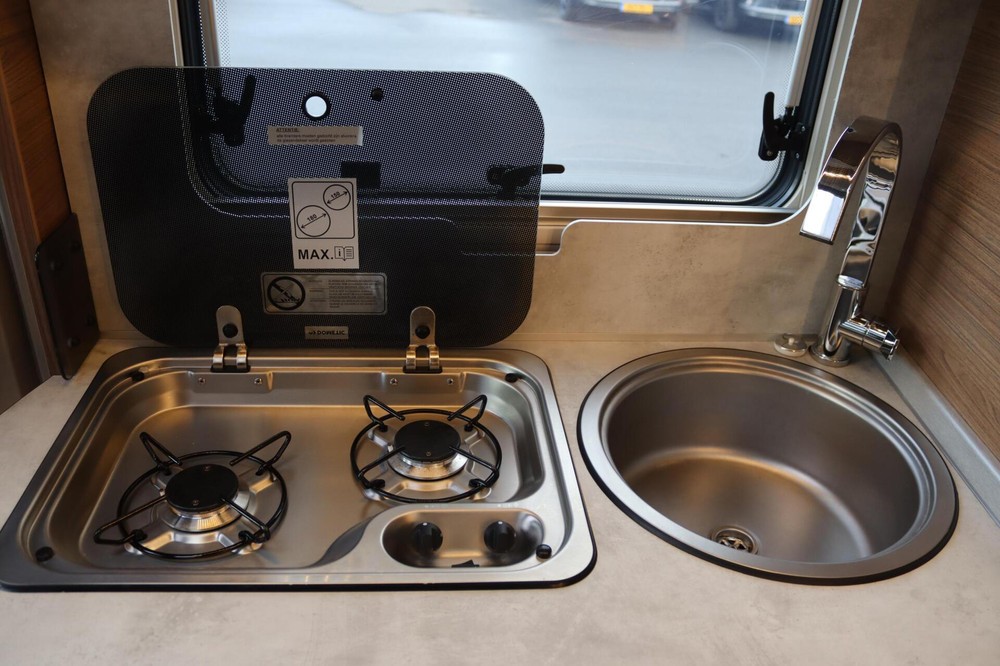 Interieur- 2-pits kookplaat met glasafdekking en RVS spoelbak