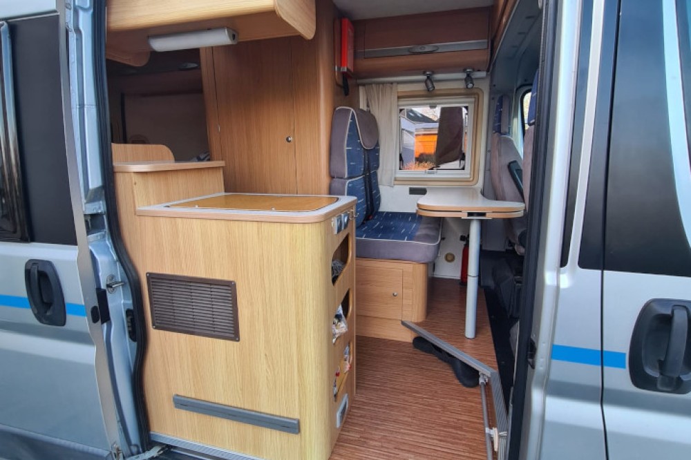 Buscamper, lengte 540 cm . Handig i.v.m. parkeren in stad.