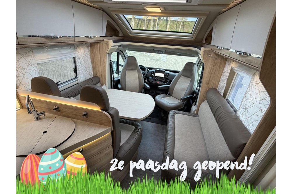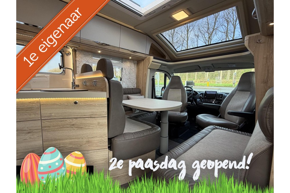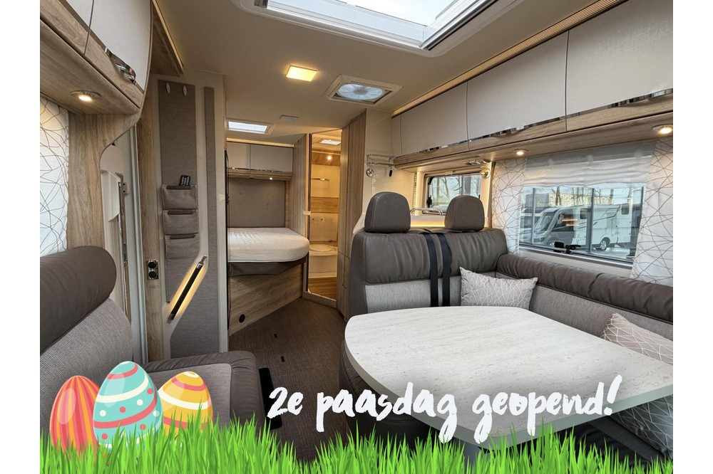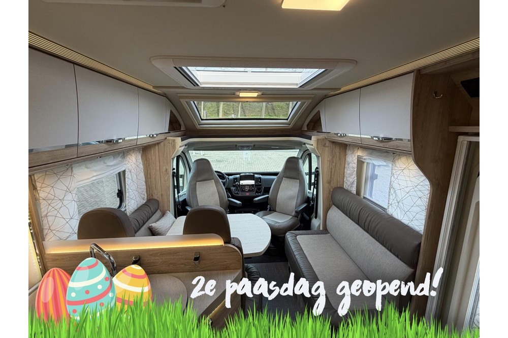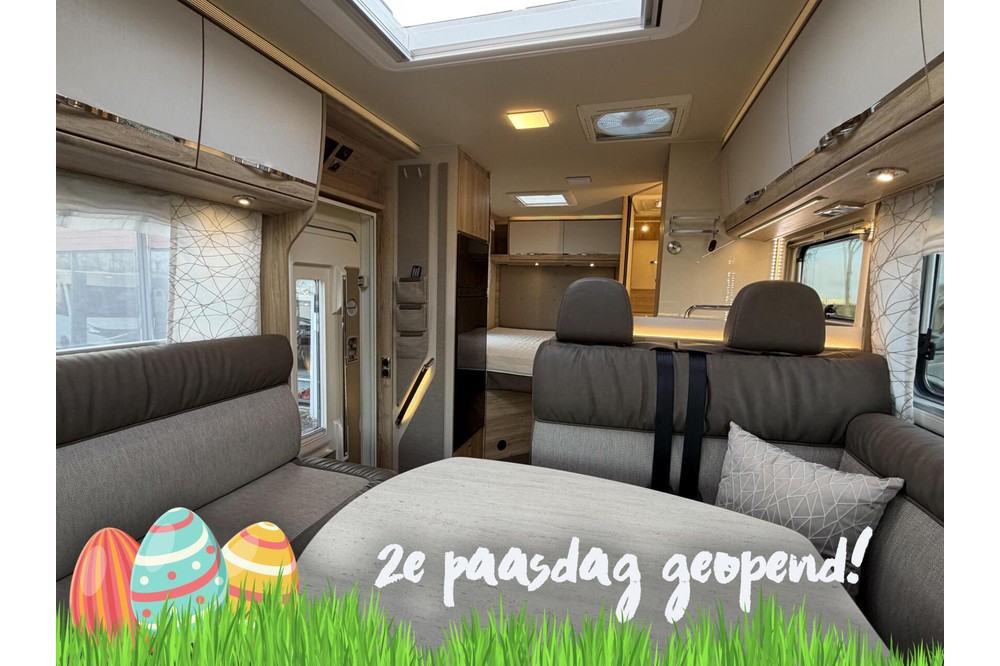 Het betreft een camper met zeer gewilde indeling met ruime rondzit dmv draaistoelen en lange bank een L keuken met XXL koelkast, een aparte douche/toilet CL ruimte, een ruim fransbed en de royale zit om te bouwen ook als slaapruimte voor 2 personen . Uiteraard is deze camper van alle gemakken voorzien, zoals motor airco, Maxxfan, Zonnepaneel , cruise control, Panorama dakraam , Automatische schotel met tv , Achteruitrijcamera, Ruime garage, Lift- fietsenrek , Luchtvering en nog veel meer!