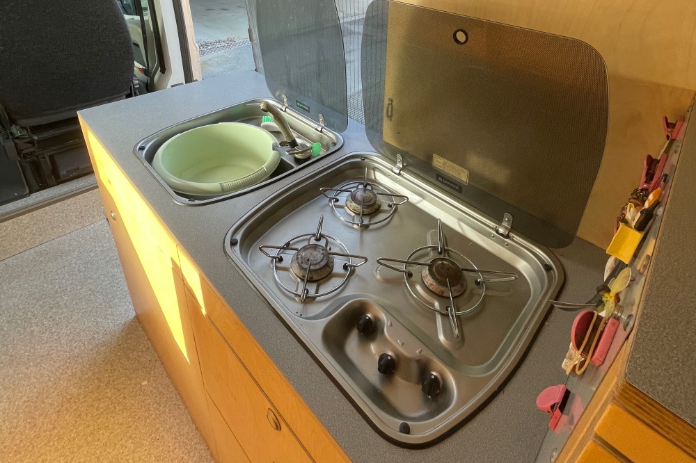 Bijzonder aan deze camper is de doordachte keukeninrichting. Voor de keuken is gebruikgemaakt van kwalitatieve IKEA-artikelen, wat resulteert in een praktische en verrassend ruime IKEA-keuken.