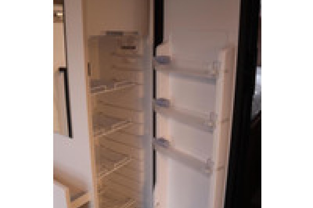 Compact en slim sanitairDe badkamer is compact, maar efficiënt ingedeeld. Een draaibare wand maakt in één beweging van de wasruimte een volwaardige douche. Het toilet is goed toegankelijk, en achter de wand vindt u een handige kast voor handdoeken, kleding en andere spullen die u liever niet in de keukenkast legt.