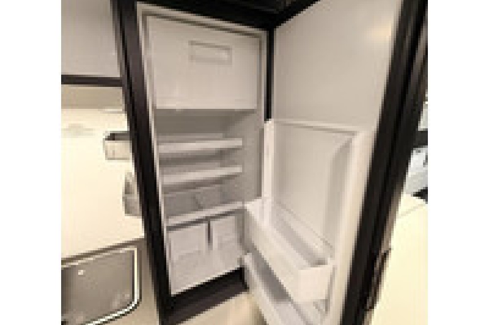 - Ruime koelkast (85 liter, boven model) met vriesvak. De koelkast werkt op 12 volt en wordt ijskoud!
