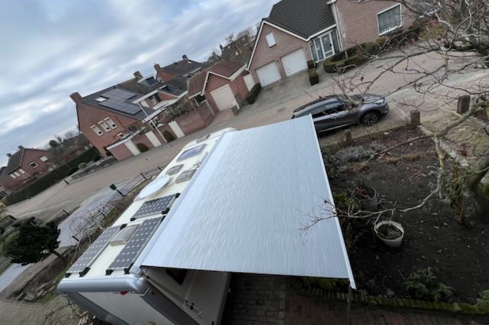 - Nieuwe luifel (2024): Thule Omnistor 9200 antraciet, over de volledige lengte (5m x 3m), zonder vlekjes